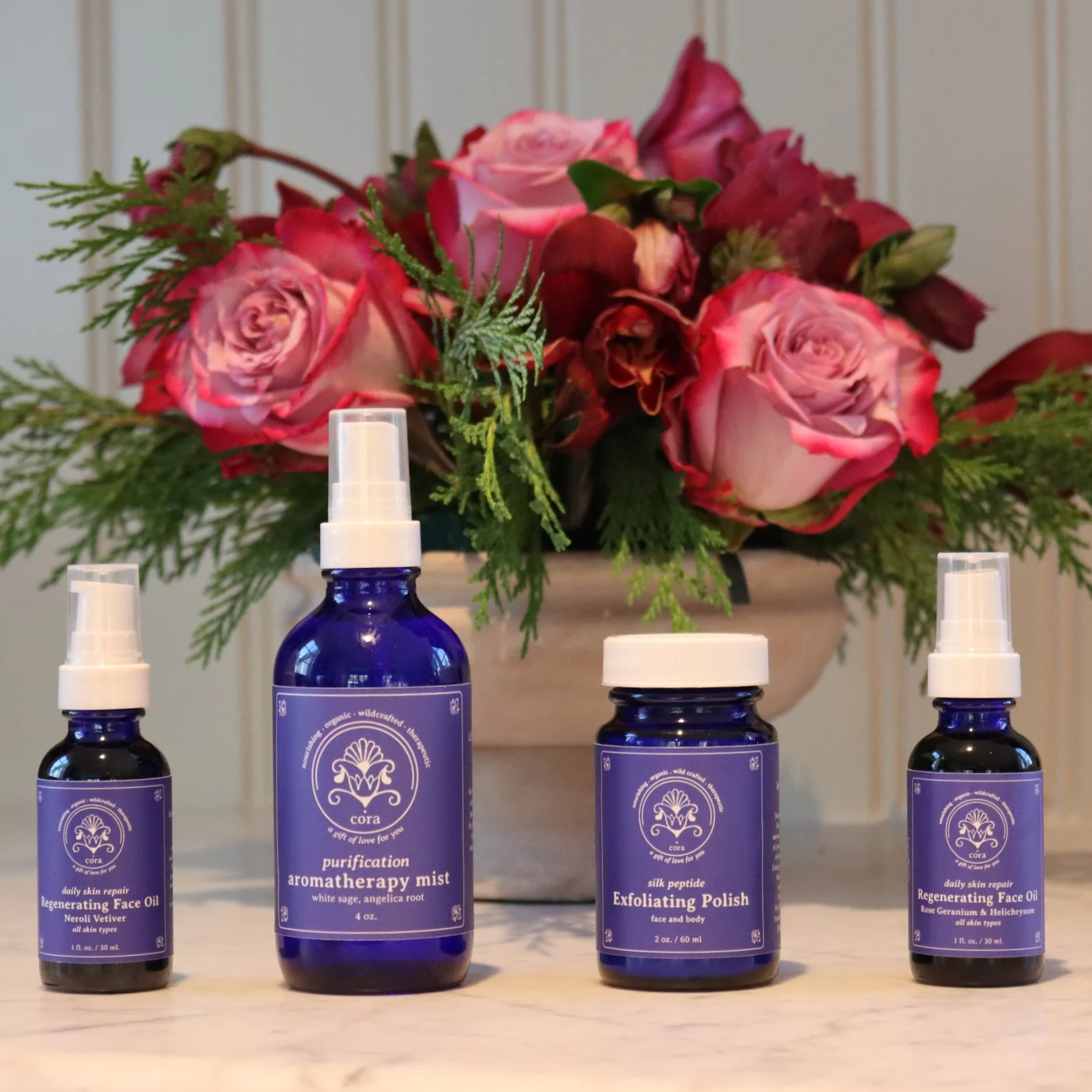 All of our products are pure gifts from nature; nourishing, organic, wildcrafted & therapeutic. Our skincare line is uplifting, rejuvenating, purifying. All ingredients are carefully researched, and tested, ethically sourced, vegan and cruelty free. A gift of love for you.